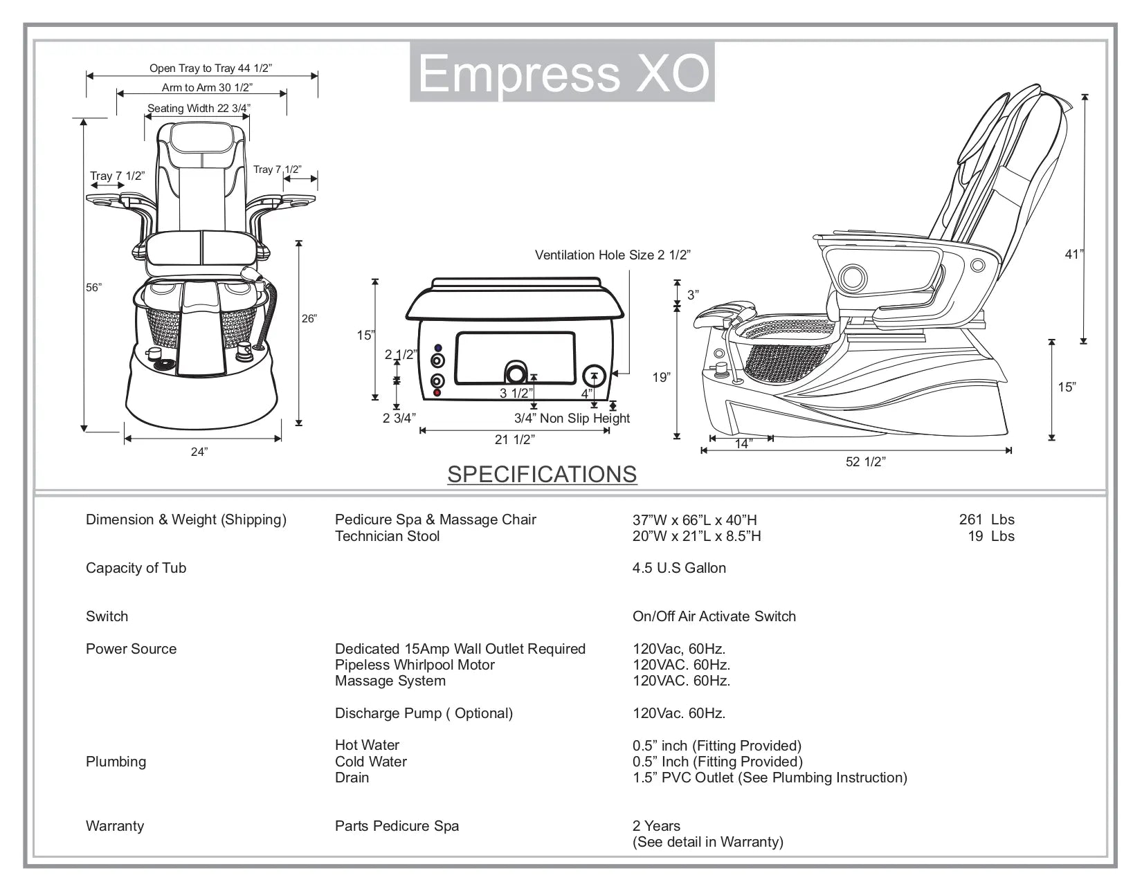 Envío de tarifa plana de $200 por 1 silla, $350 por 2 sillas, $500 por 3 sillas y ENVÍO GRATIS por 4 o más sillas de pedicura a una dirección comercial en los EE. UU. continentales.